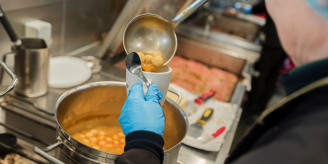 Kwaliteit en smaak zijn het allerbelangrijkste. Het voedsel wordt na de bereiding zo snel mogelijk afgekoeld, in porties per huis verdeeld en klaar gezet voor vervoer. We maken vooral klassieke gerechten die voor iedereen toegankelijk zijn en geven daar een eigen touch aan. Zo kan de juiste kruiding het verschil maken tussen een lekker en een heerlijk gerecht.